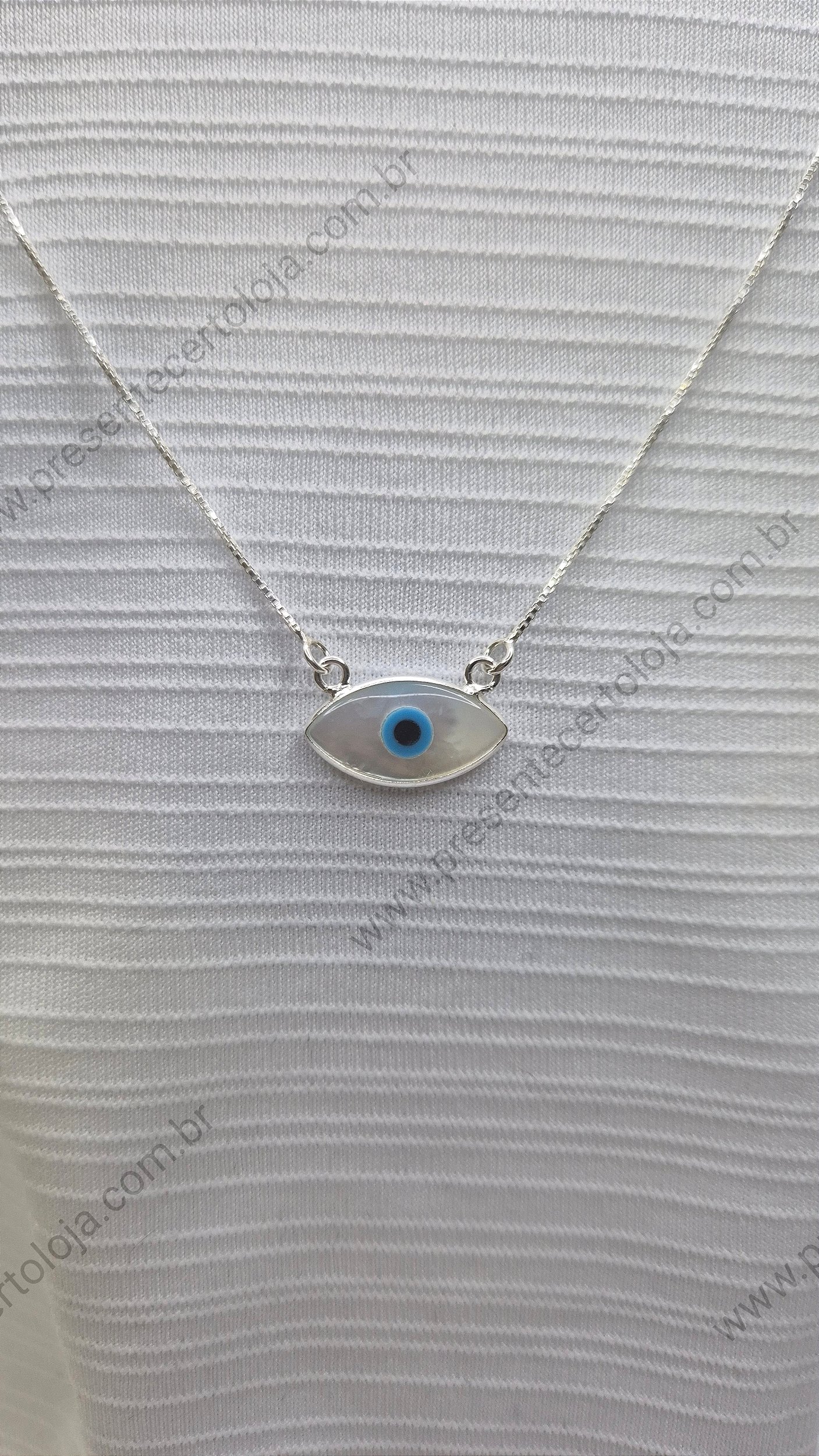 O Colar Olho Grego com base de Madrepérola é uma joia delicada que traz significado e beleza atemporal. Feito em Prata 925, esse modelo possui um brilho suave e acabamento refinado, ideal para composições ou uso individual.