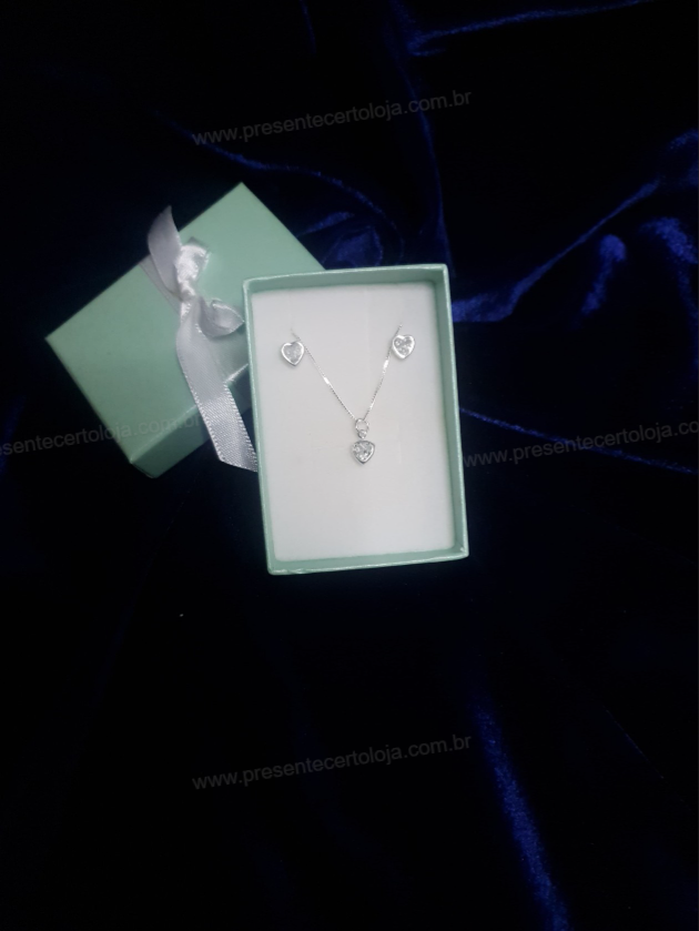 O Conjunto Coração com Zircônia Branca é a escolha perfeita para quem busca uma joia romântica, versátil e cheia de luz. Feito em Prata 925 legítima, ele combina um colar com corrente de 45cm e um par de brincos, ambos com pingentes em formato de coração cravejado com zircônia V12 — brilho intenso que valoriza qualquer look.